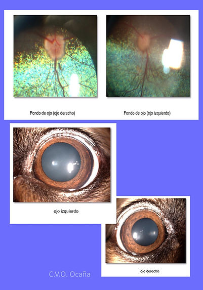 El paciente se remite para valoración y pruebas específicas a la Clínica Veterinaria Oftalmológica Ocaña con los siguientes resultados:
